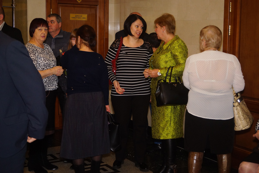 К культмероприятию Ирина Михайловна тщательно подготовилась. Несмотря на то, что концерт проходил вечером рабочего понедельника, чиновница предстала в парадном костюме из ярко-салатовой блестящей ткани, в то время как Беда предпочла стиль casual: темные брюки и полосатый джемпер. В ожидании выступления певца женщины мило беседовали на VIP-местах, разглядывая рекламные брошюры с предстоящими концертами.