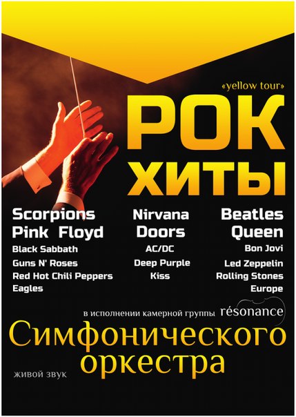 Хиты «золотого фонда» мировой музыки таких легендарных рок-групп, как Pink Floyd, Nirvana, Doors, Led Zeppelin и многих других зазвучат по-иному в обработке камерной группы Resonance, концерт которой состоится завтра в Концертном зале.