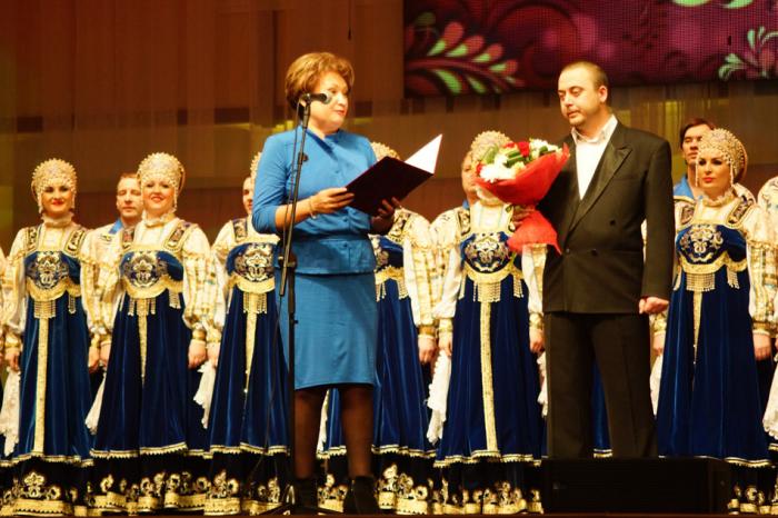 Любящая украшения она сравнила коллектив-юбиляр с «золотым кольцом с платиновой оправой». Зачитала и приветственный адрес от губернатора Омской области Виктора Назарова, который, как известно, отпраздновал день рождения нашего хора в Москве вместе с федеральным вице-премьером Ольгой Голодец. В столице, напомним, прошел концерт коллектива, ставший кульминацией гастрольного тура омичей по России.