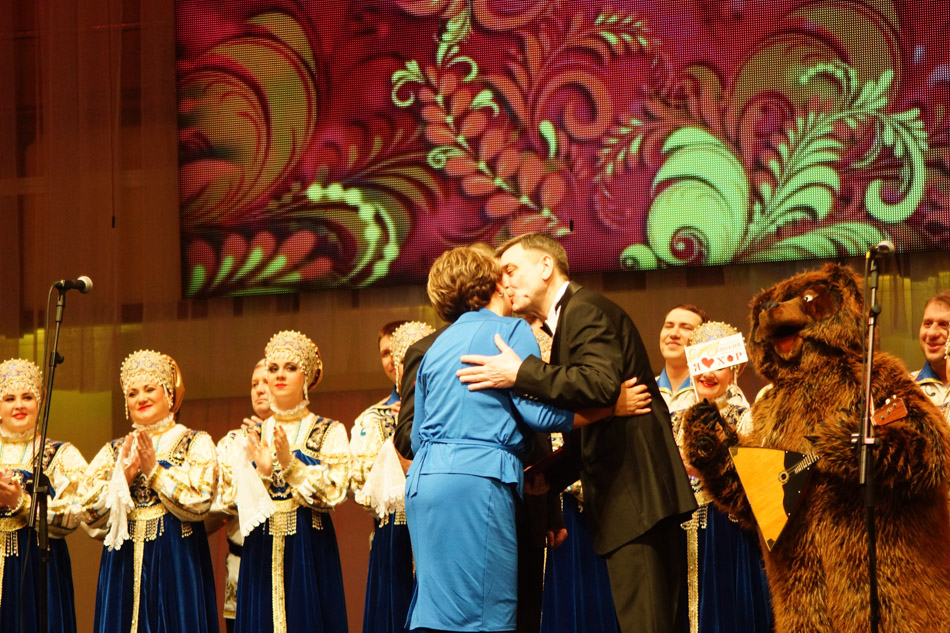 Татьяну Вижевитову целует худрук Омского хора Александр Зобов