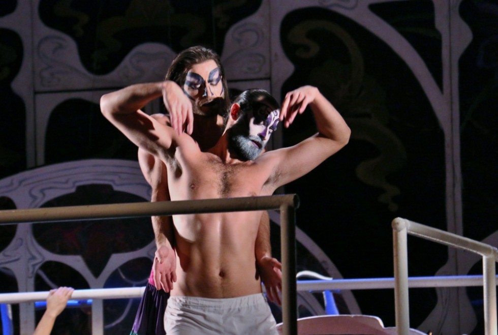 Знаменитый спектакль «Служанки» в Омске. Грим одного из героев явно вдохновлен победительницей «Евровидения» Кончитой Вурст