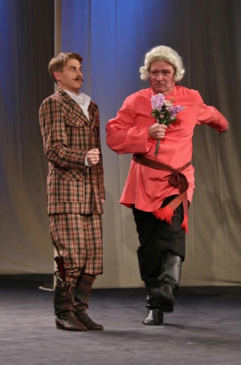 Павел Кондрашин появился на сцене в роли фельдфебеля. И даже с цветами.
