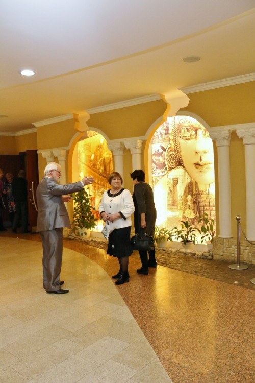 Супруга г-на Кондрашина дефилировала в хорошем настроении по фойе кукольного театра, пока ее супруг настраивался на выход в водевиле «Графиня Эльвира», который был в первом действии юбилейного торжества.