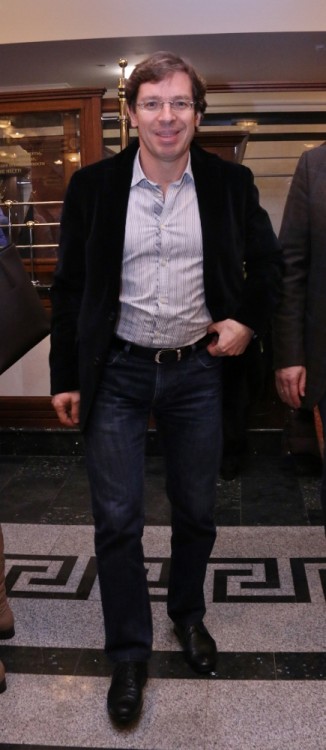 Для встречи с корифеем поэзии Кошель предпочел стиль casual – джинсы, темный неофициальный пиджак и сорочку в полоску. Гардероб был выбран совершенно точно – поэтический вечер Евтушенко подразумевал лишь одну яркую личность. Поэта.