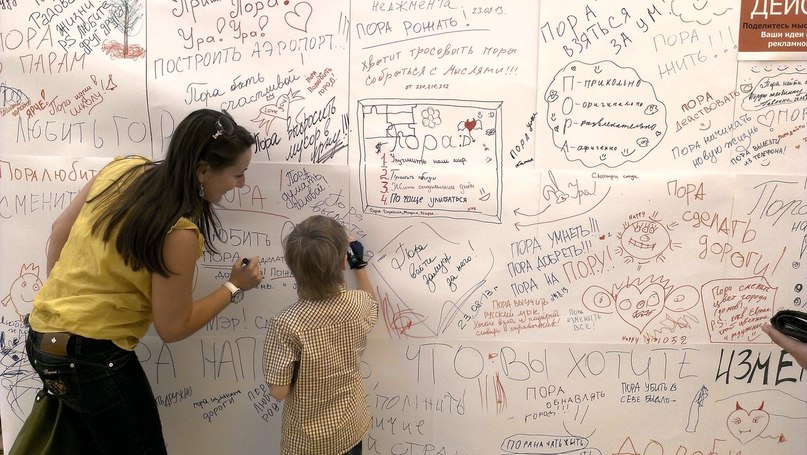 На три дня в холле ТК «Континент» были размещены специальные баннеры, на которых любой желающий мог поделиться мыслями о том, что же пора сделать в Омске (для себя, для окружающих, для города).