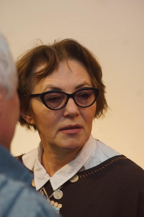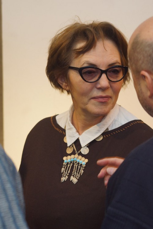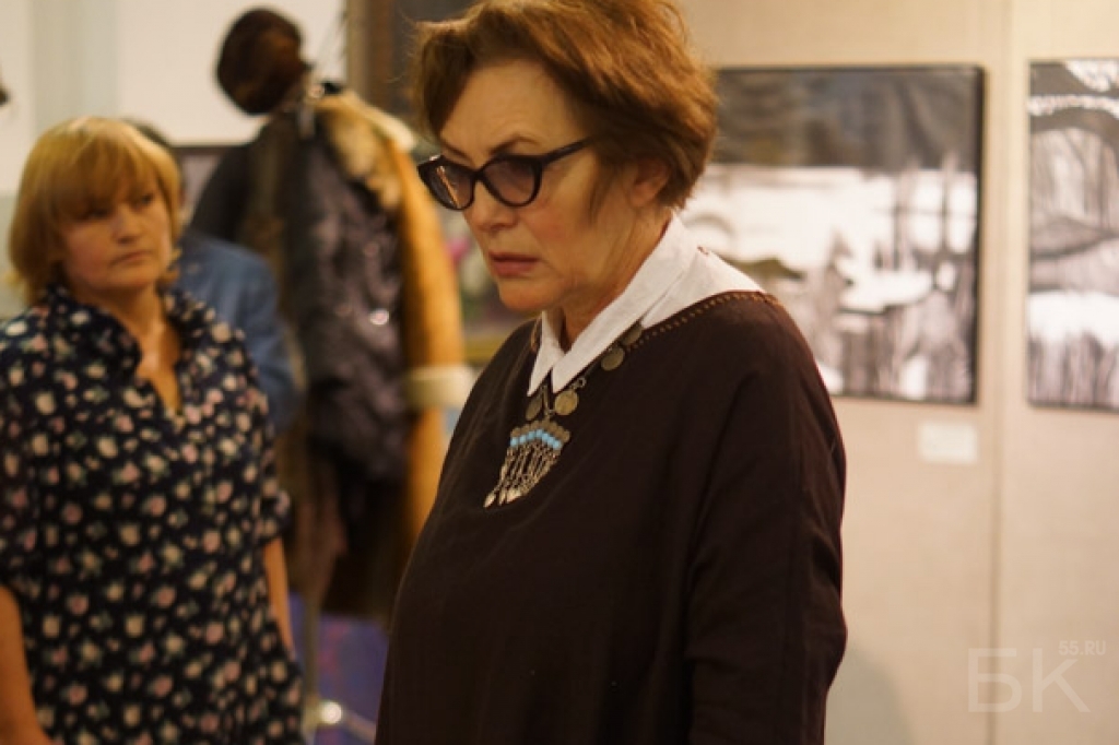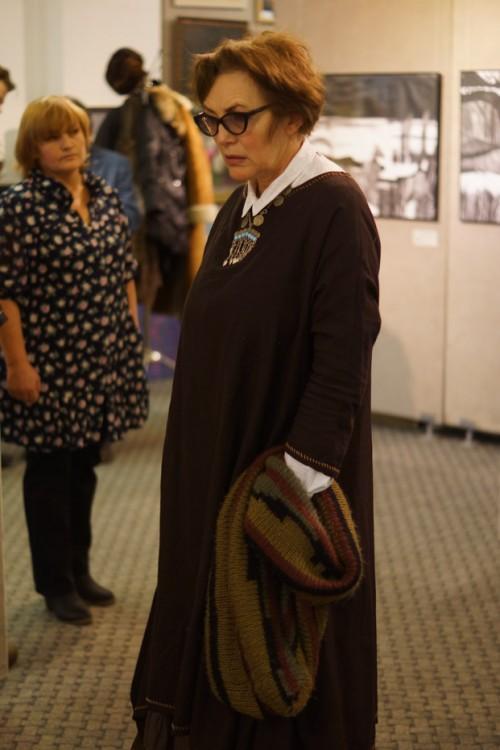 Свой образ на вернисаже известный омский дизайнер дополнила колье в этническом стиле.