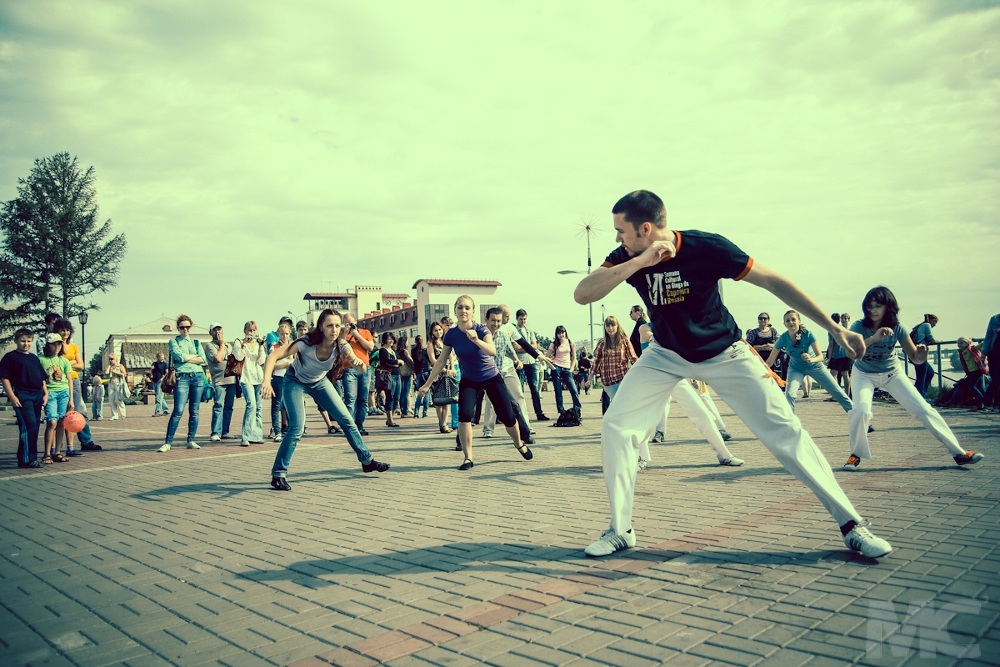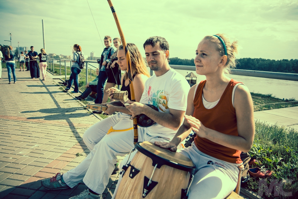 Тем временем на противоположной стороне площадки все желающие могли взять мастер-класс по капуэйра под живой музыкальный аккомпанемент.