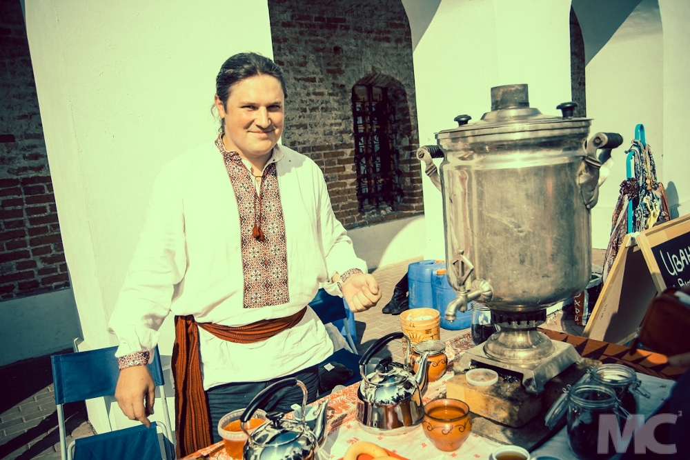 Праздник длился 8 часов. Чтобы голод не мешал веселью, гостям фестиваля пердложили купить что-нибудь в лавках с интересными угощениями: в крепости продавался и Иван-чай из «русской чайной машины», и натуральные десерты.