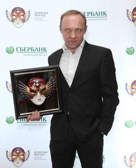 Виталий Кищенко с «Золотой маской» за спектакль «Без названия» Евгения Марчелли. Роль в этой постановке Кищенко сыграл уже после ухода из Омской драмы в Ярославле, где сейчас работает Марчелли