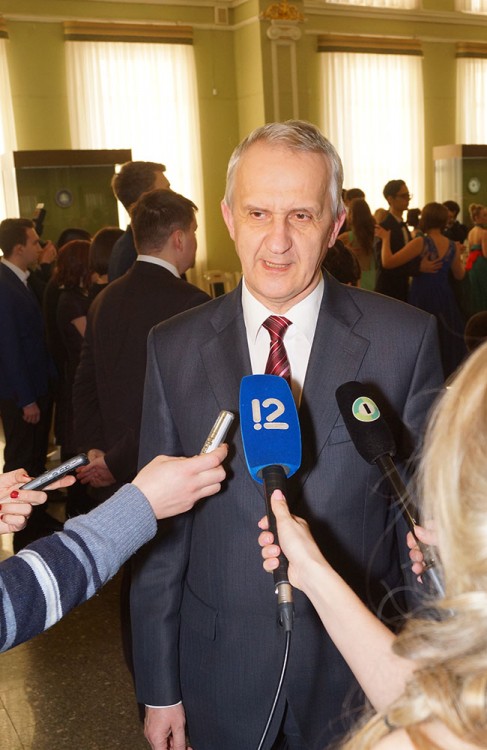 Однако студентку Викторию Озол никто не предупредил, что ректор не будет исполнять полонез. И она была шокирована, когда Алексей Якуб вместо этого проследовал на свое место в вип-ряду, рядом с главой департамента правового обеспечения Андреем Подгорбунских и замминистра культуры Людмилой Чекалиной.