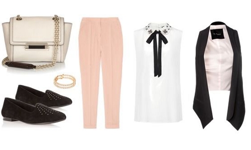 - Браслет Asos, сумка Diane von Furstenberg, туфли Caprice, блузка Mango, брюки Stella McCartney, жилет Kira Plastinina