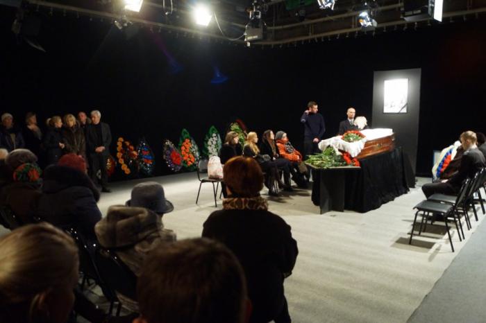 Помещение с технологически необходимым черным обрамлением стен даже не пришлось специально драпировать. «Мы сами вышли с инициативой, чтобы процедура прощания прошла именно в телекомпании. Родные нас поддержали. Я работала короткий промежуток времени с Юрием Лазаревичем на политической программе «Лицом к лицу» и могу засвидетельствовать, что это был замечательный человек», – призналась нашему ресурсу нынешний директор ГТРК «Иртыш» Татьяна Филиппенко.