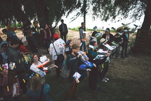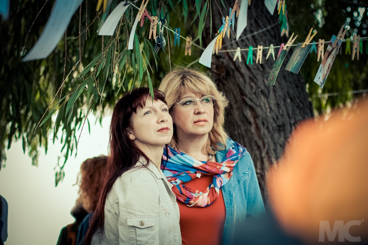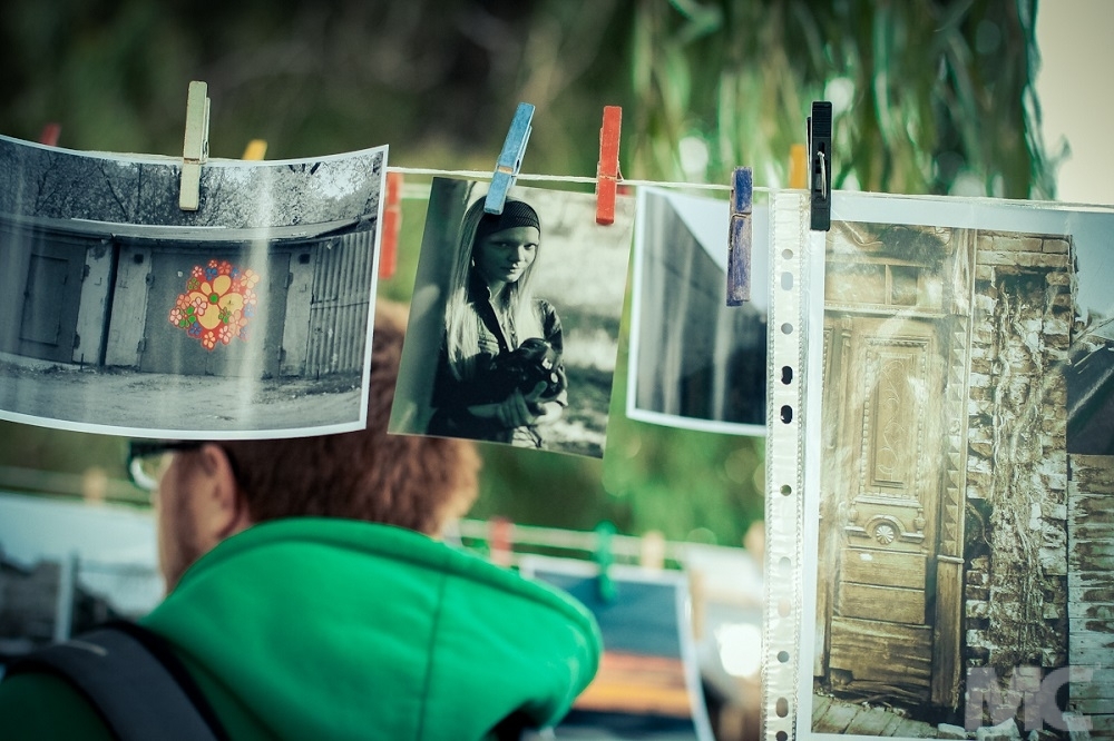 В назначенное время на берегу у Воскресенского сквера были натянуты веревки, на которых висели разноцветные прищепки. Гости начали заполнять веревки своими фотографиями. Как и обещали организаторы, тематика снимков была не ограничена: участники могли принести изображения любого характера, начиная от кухонных банок и заканчивая личными портретами.