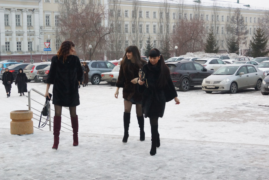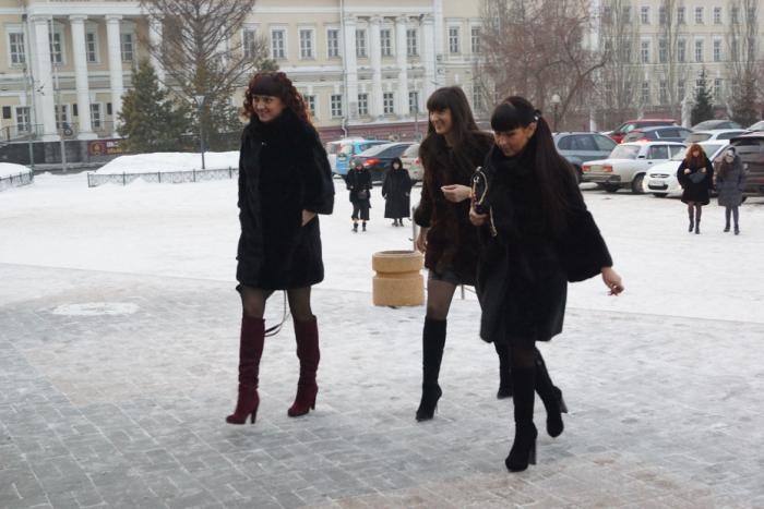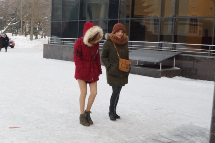 Некоторые из девушек вовсе перешли на мартовскую экипировку. Отойдя от тяжелых зимних изделий, они надели легкие короткие куртки.