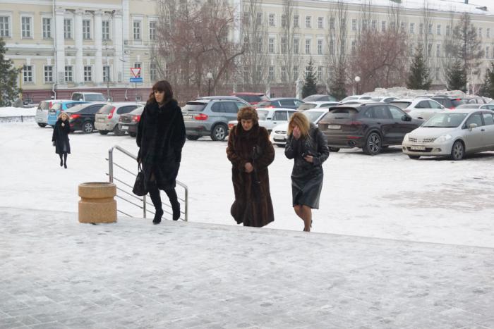 Между тем среди посетительниц находились женщины, которые были одеты по погоде. Однако и они проигнорировали головные уборы в виду наступления весны.