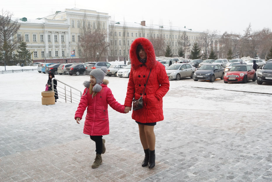 Особое внимание окружающих привлекла девушка-подросток в красной куртке. Ради концерта она не стала заботиться о здоровье, а решила продемонстрировать стройные ножки во всей красе.