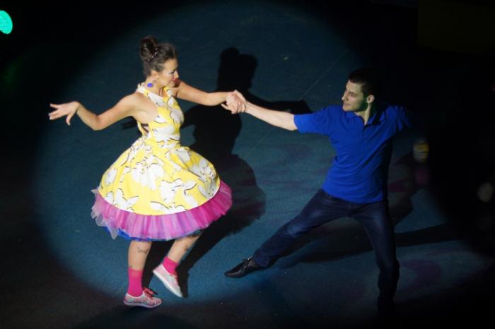 Конкурс «Давайте потанцуем» объединил пятерых исполнительниц, которые ради того, чтобы выйти на танцпол, два месяца занимались с профессиональными тренерами. Безусловно, главной изюминкой вечера были эти «смелые», как их назвал один из членов жюри Сергей Флягин, дамы.