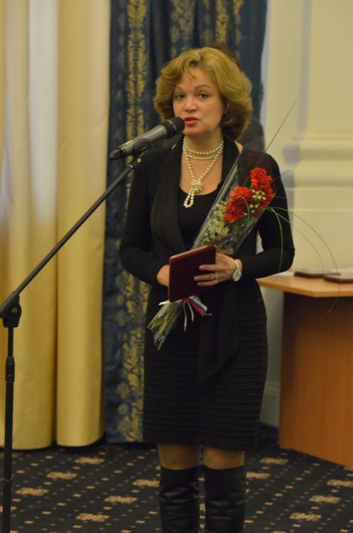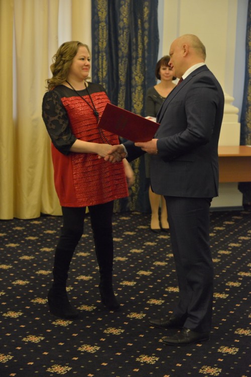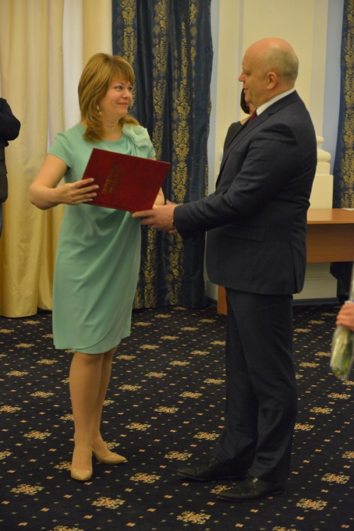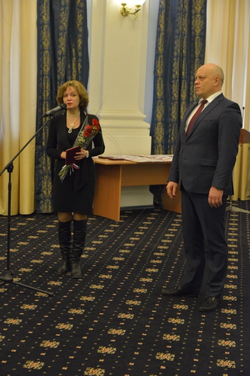 Успевшая сменить зимнюю обувь на элегантные лаковые бежевые туфли заместитель генерального директора ГТРК «Омск» Елена Моренис, получившая из рук руководителя региона почетную грамоту правительства Омской области, подобно г-же Сибиной тоже демонстрировала женственный образ.
