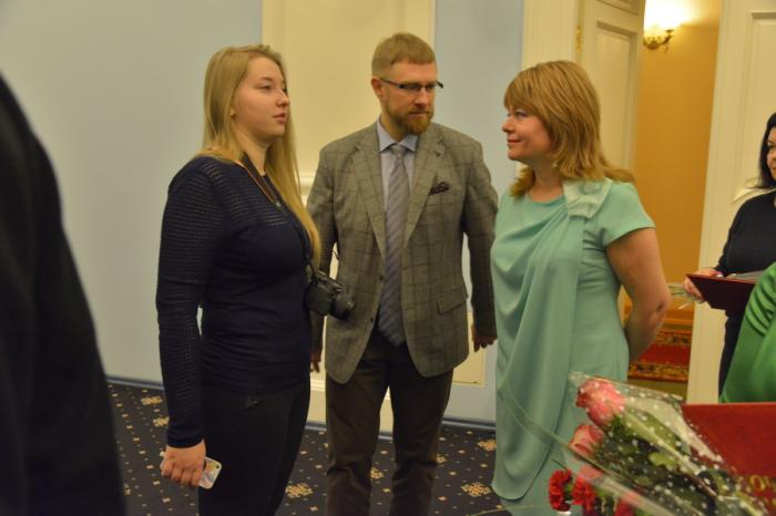 Елену Моренис в Заксобрание пришли поздравить ее босс Александр Малькевич и пресс-секретарь «12 канала» Алина Атаманенко
