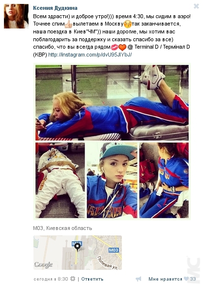 Олимпийская чемпионка 2012 года по художественной гимнастике в групповом многоборье, Ксения Дудкина, только пару часов назад прилетела в Москву. "МС2" связался с Ксюшей, чтобы поздравить её с победой. «Добрый день. Прошу меня извинить, я очень постараюсь ответить чуть позже», - сказала Ксения. Следите за обновлениями.