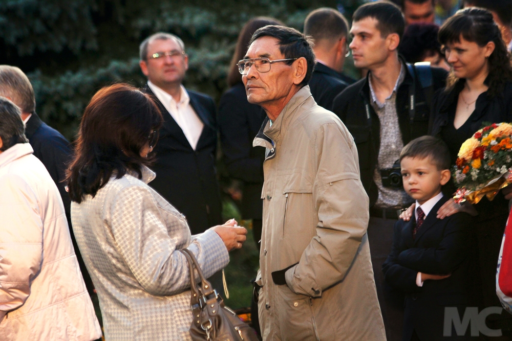 В первом из общеобразовательных учреждений линейка началась в 9 утра, во втором - часом позже - в 10 часов. Оба мероприятия ознаменовались классическим первым звонком, который дала самая легкая и симпатичная первоклассница, сидящая на плече у самого выносливого завтрашнего выпускника.