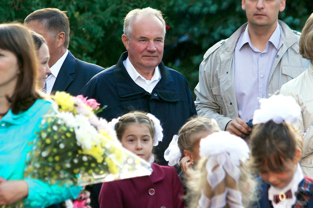 Спикер Заксобрания Омской области Владимир Варнавский с супругой и со своим сватом Павлом Борисовым (ресторан "Клуб деловых людей") пришли на линейку к общему внуку