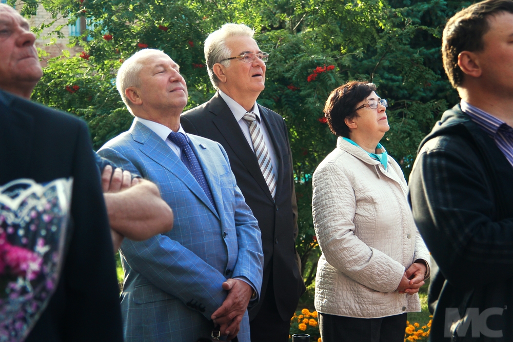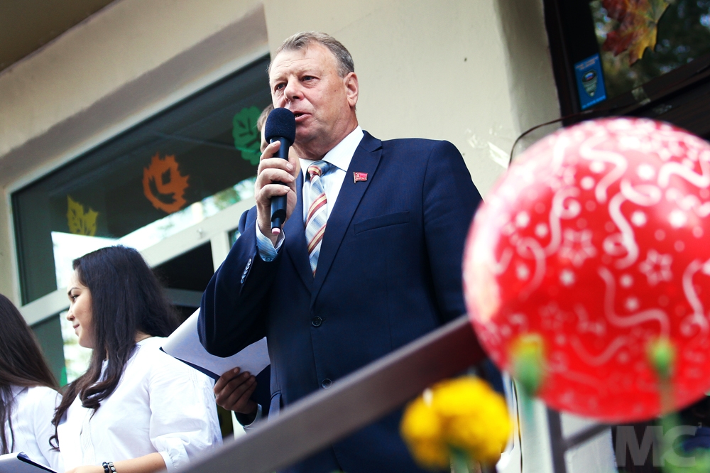 После традиционного приветственного слова директора, поздравить школьников на крыльцо храма знаний поднялись директор департамента по делам молодежи, физкультуры и спорта Михаил Расин и Геннадий Дроздов, представитель фракции КПРФ в Горсовете г. Омска - в 19-й и 115-й гимназиях соответственно.