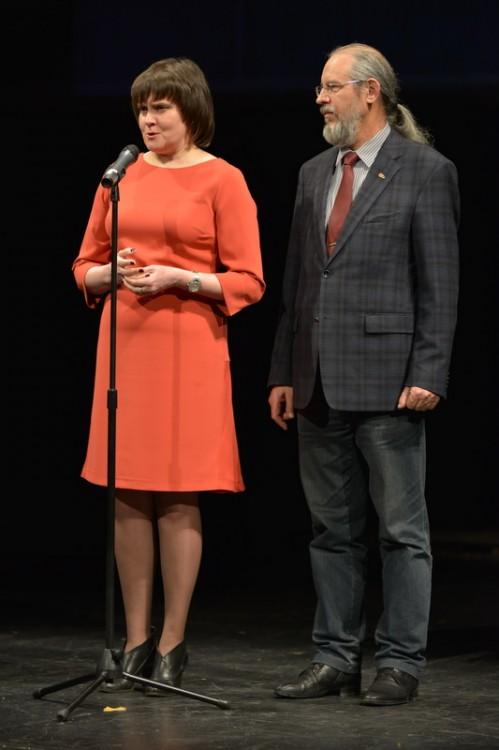 На сцене Академической драмы начальник главного управления информации и печати вручала награду вместе с художником-микроминиатюристом Александром Коненко победительнице в номинации «Инициатива». Ею стала президент федерации кинологического спорта, инициатор открытия центра по работе с детьми с ограниченными возможностями Наталья Чайка. Учреждение носит название «Лапу, друг!» и помогает в реабилитации больных юных омичей.