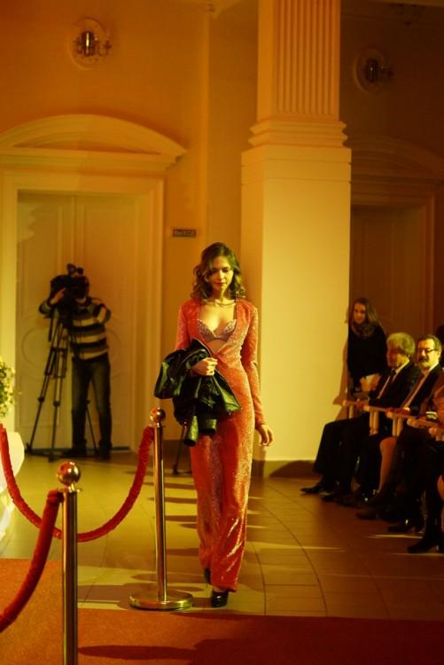 Смелый и откровенный наряд из переливающейся ткани заставил обомлеть сидящих в первых рядах мужчин. Они, не скрывая интереса, рассматривали детали необычного платья.