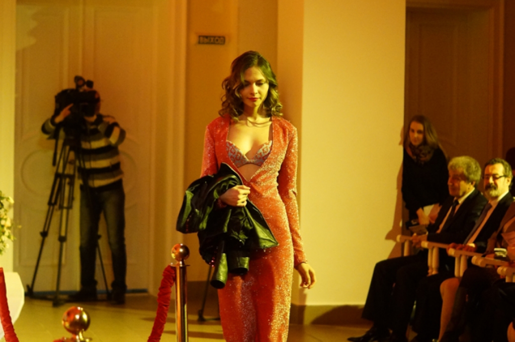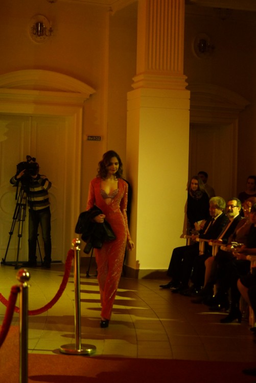 Смелый и откровенный наряд из переливающейся ткани заставил обомлеть сидящих в первых рядах мужчин. Они, не скрывая интереса, рассматривали детали необычного платья.