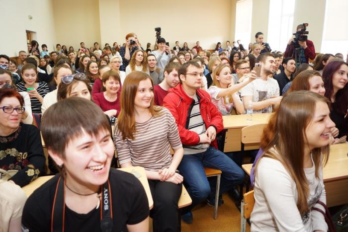 В субботу, 9 апреля, в 308 аудитории четвертого корпуса ОмГУ им. Ф.М. Достоевского яблоку некуда было упасть. За столы, предназначенные для четверых, люди садились по шестеро, создавались дополнительные ряды, сзади кто-то стоял – но всех это полностью устраивало. Ждали Диану Арбенину. Начали собираться в 12 – за два часа до назначенного времени.