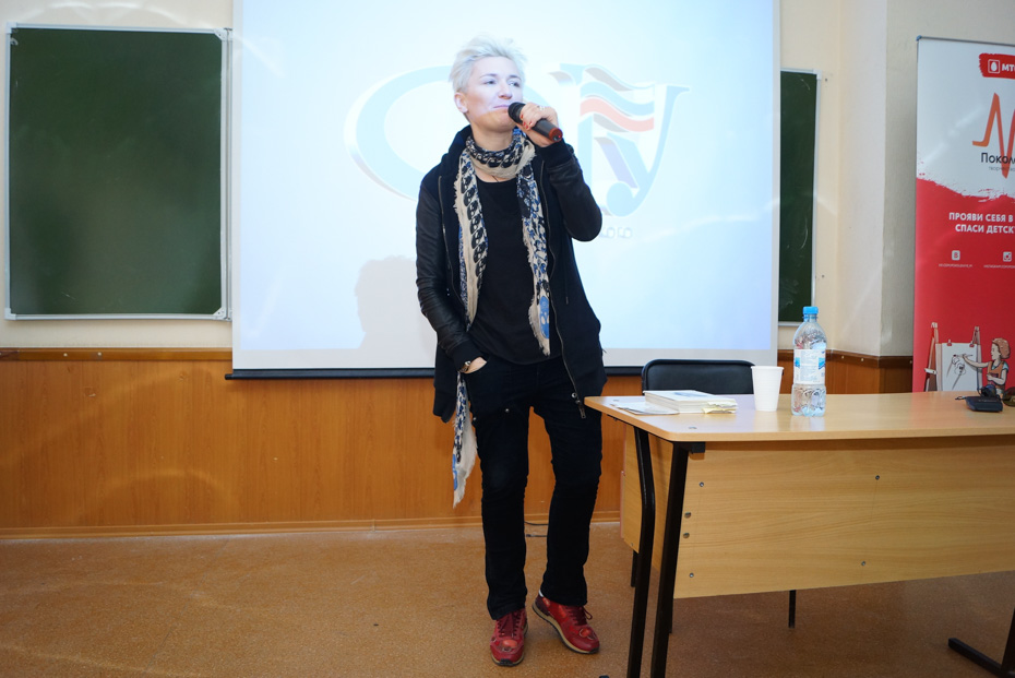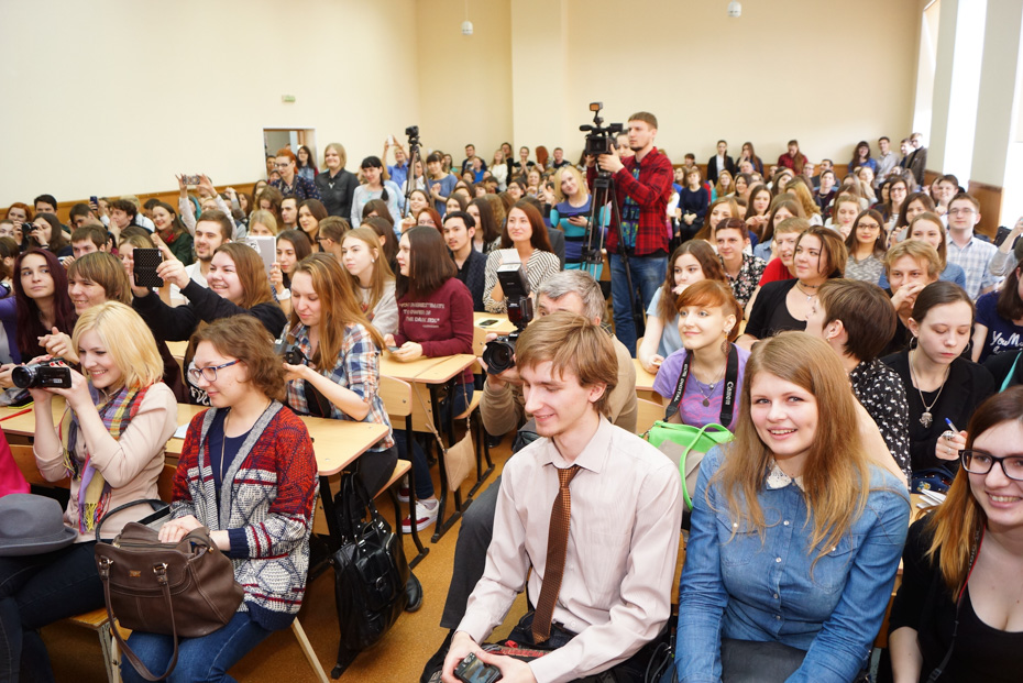 В субботу, 9 апреля, в 308 аудитории четвертого корпуса ОмГУ им. Ф.М. Достоевского яблоку некуда было упасть. За столы, предназначенные для четверых, люди садились по шестеро, создавались дополнительные ряды, сзади кто-то стоял – но всех это полностью устраивало. Ждали Диану Арбенину. Начали собираться в 12 – за два часа до назначенного времени.