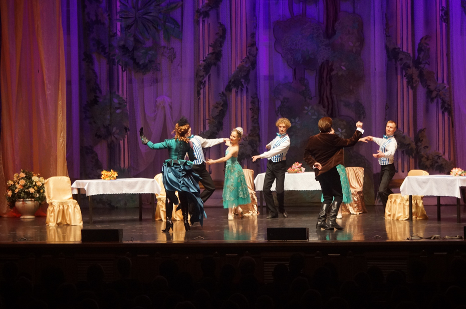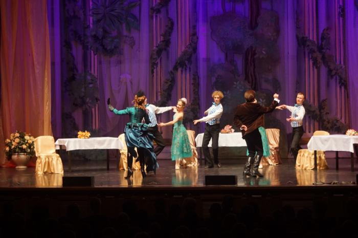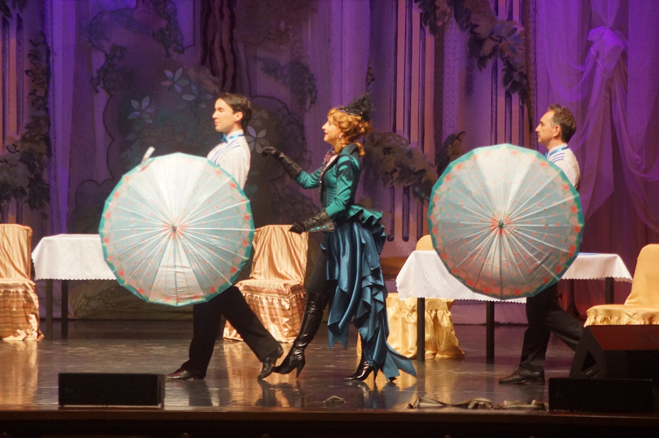 Заметим, что эта постановка по произведению знаменитого Иоганна Штрауса не идет на сцене Московского театра оперетты, но в силу малой населенности и мобильных, весьма скромных декораций активно играется на площадках первопрестольной. Как видим, и в провинции тоже.